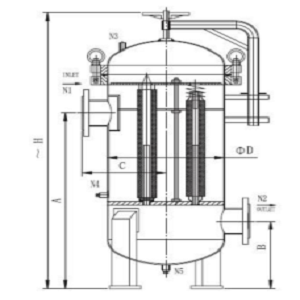 保安過濾器是由上蓋,濾芯,不銹鋼材質罐體,法蘭進出水口,排污口,排氣閥,壓力表,導流桿,不銹鋼支腳等設備構成。在設備工作壓力的作用下,原液進入進水口,通過濾材,濾渣被濾芯留在管壁上,干凈的濾液透過濾材從出水口流出,最終達到過濾的目的。